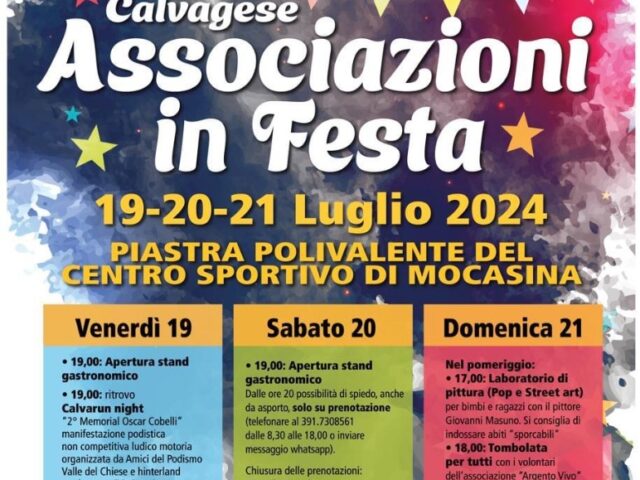 L'Amministrazione Comunale di Calvagese della Riviera con le Associazioni e i Gruppi del territorio organizza "Calvagese Associazioni in Festa" dal 19 - 20 - 21 luglio 2024. Tre giorni di divertimento, buon cibo e musica ma soprattutto l’occasione per conoscere e aiutare il mondo...
