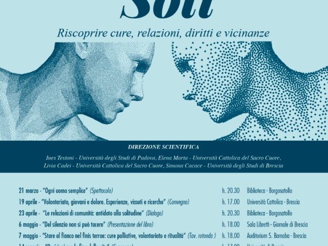 La seconda edizione di "Dialoghi sull'eternità" intitolata "Non morire soli: riscoprire cure, relazioni, diritti e vicinanze" organizzata dall'Associazione Oltrepassando aps, con il patrocinio dell'Università degli Studi di Brescia, propone una rassegna di eventi da venerdì 19 aprile a giovedì 23 maggio.