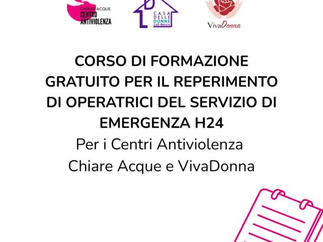 I Centri Antiviolenza Chiare Acque con sede in Salò e VivaDonna con sede in Gardone Valtrompia organizzano un corso di formazione per il reperimento di operatrici del servizio di emergenza.