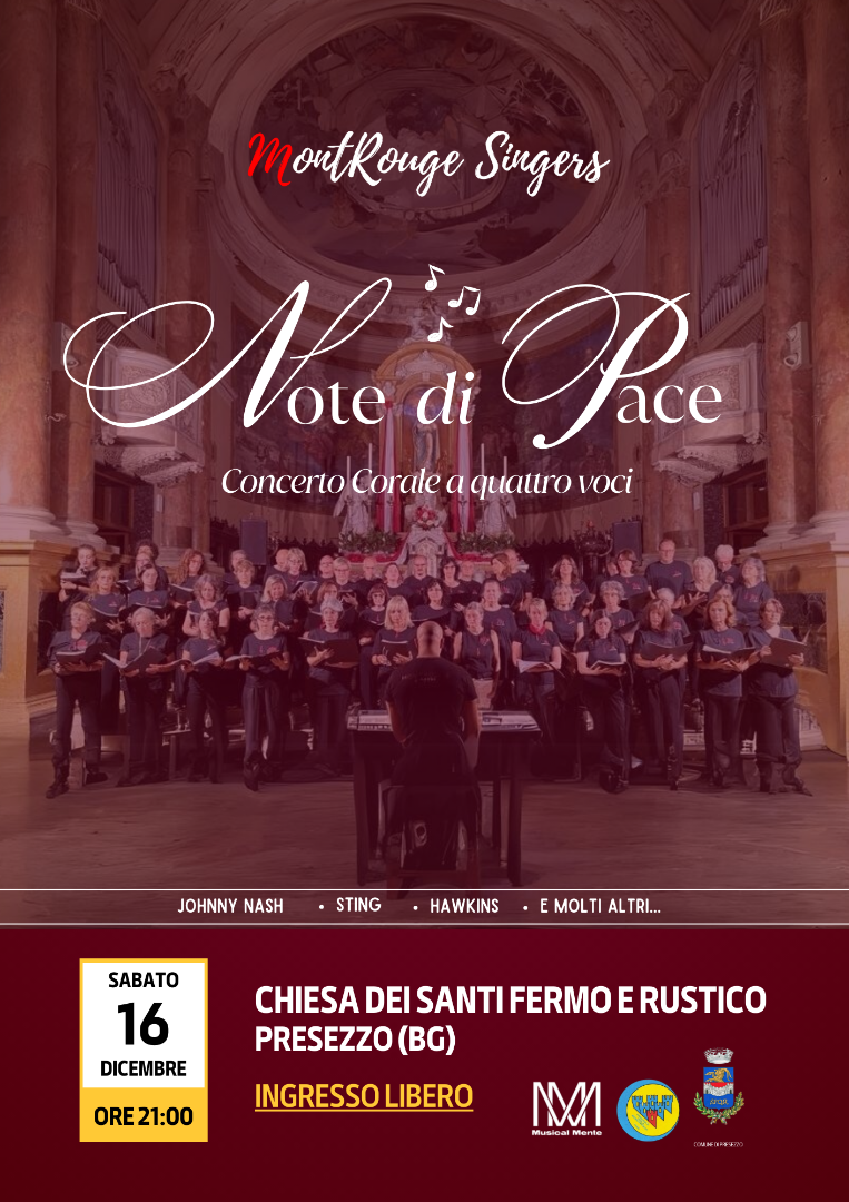 Associazione Musical Mente invita Sabato 16 Dicembre alle 21.00 presso la Chiesa dei Santi Fermo e Rustico di Presezzo (BG) per il concerto corale "Note di Pace".