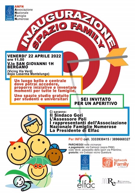 Venerdì 22 aprile alle ore 11 inaugura in vicolo San Giovanni 1H a Bergamo il nuovo Spazio Family, un luogo dove poter costruire iniziative e momenti dedicati a tutte le famiglie.
