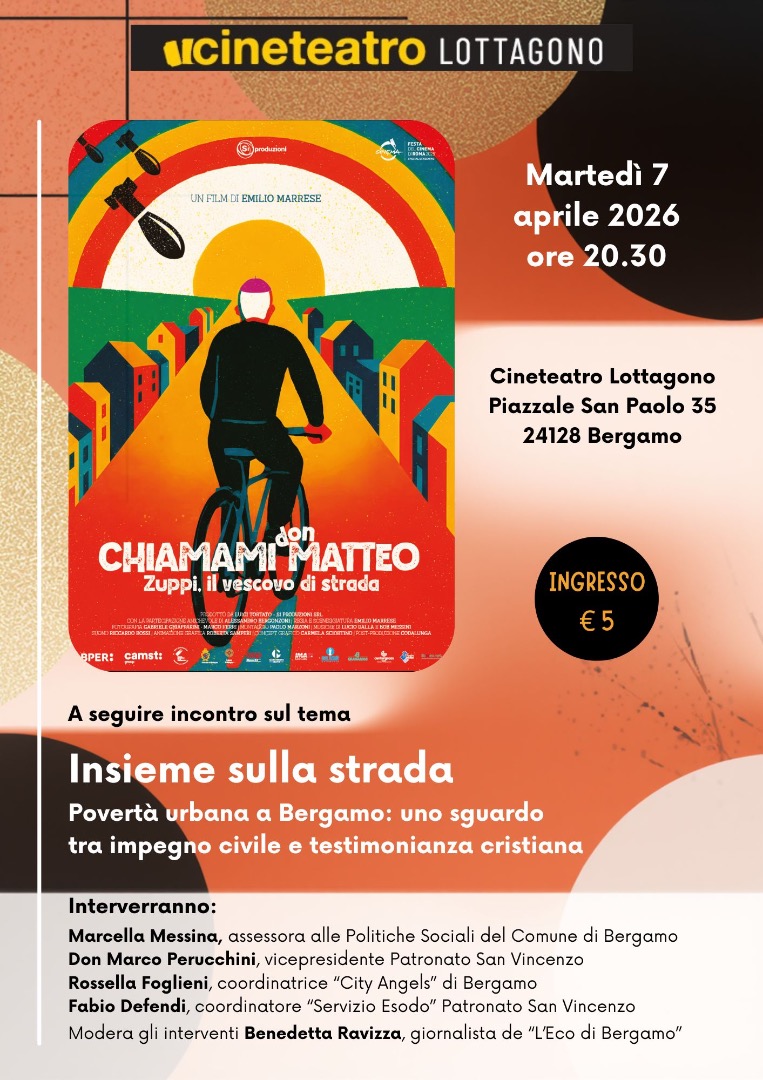 Martedì 7 aprile, alle 20.30 al Cineteatro Lottagono a Bergamo, è in programma la proiezione del docu-film «Chiamami don Matteo – Zuppi, il vescovo di strada», dedicato all’arcivescovo di Bologna, presidente della CEI e figura simbolo di una chiesa aperta all’innovazione e al dialogo.