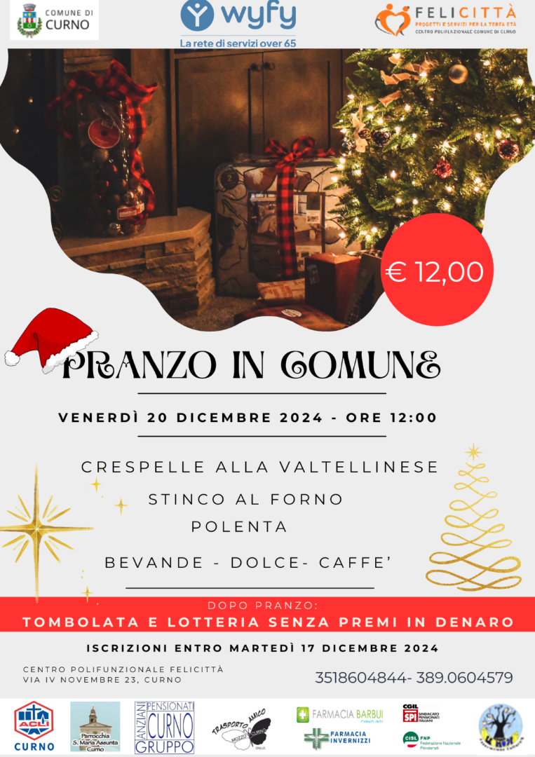 Il pranzo si terrà venerdì 20 dicembre 2024 alle ore 12:00 presso la sede di Felicittà.