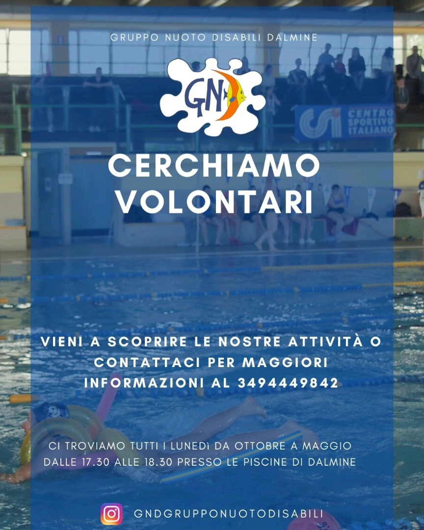 Gruppo Nuoto Disabili ODV di Dalmine, associazione di volontariato per attività ludico-ricreative e natatorie per ragazzi con disabilità, è alla ricerca di nuovi volontari per attività in piscina.
