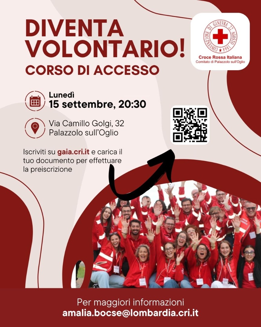 Croce Rossa Italiana Comitato di Palazzolo sull'Oglio è alla ricerca di volontari desiderosi di offrire il proprio tempo al servizio della comunità.
