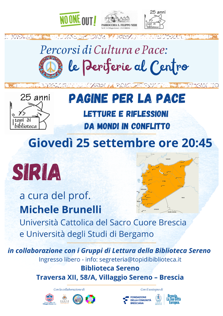 Pagine per la Pace- SIRIA giovedì 25 settembre 2025 ore 20:45 Biblioteca Villaggio Sereno Brescia.