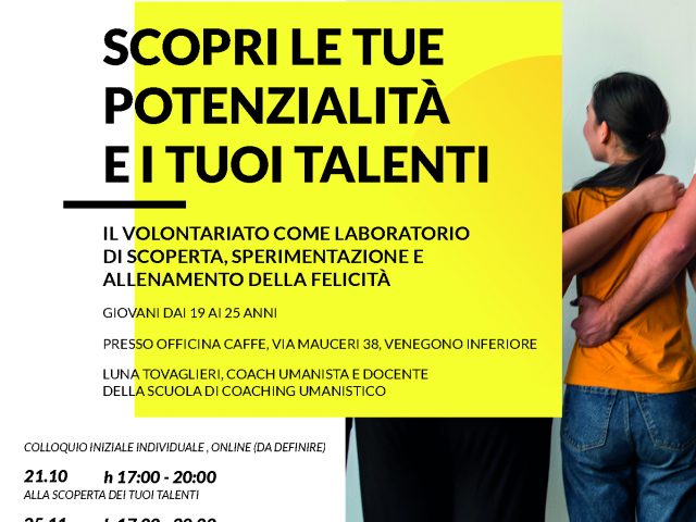 Fondazione Mission Bambini organizza un'iniziativa rivolta ai giovani dai 18 ai 24 anni che al momento non inseriti in nessun percorso formativo o lavorativo. Si tratta di un percorso di formazione articolato in 15 incontri (di cui 2 in modalità online e 13 in...