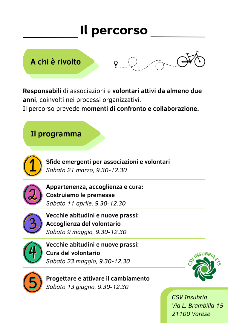 Luogo: presso la sede di CSV INSUBRIA ETS di Varese, via Brambilla, 15, (all’interno del parco dell’istituto De Filippi)