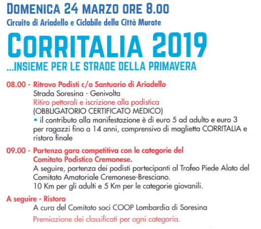 Nel frattempo Aics si prepara all’edizione 2019 di Corritalia, domenica 24 marzo alle ore 8.00.