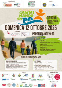 CAMMINANDO UN PO è una camminata che si svolgerà domenica 12 ottobre 2025 con partenza alle ore 9,00 dal Parco delle Colonie Padane di Cremona, con un itinerario sugli argini del fiume Po nei comuni di Cremona, Gerre de’ Caprioli e Stagno Lombardo, lungo un percorso agevole ed adatto a tutti.