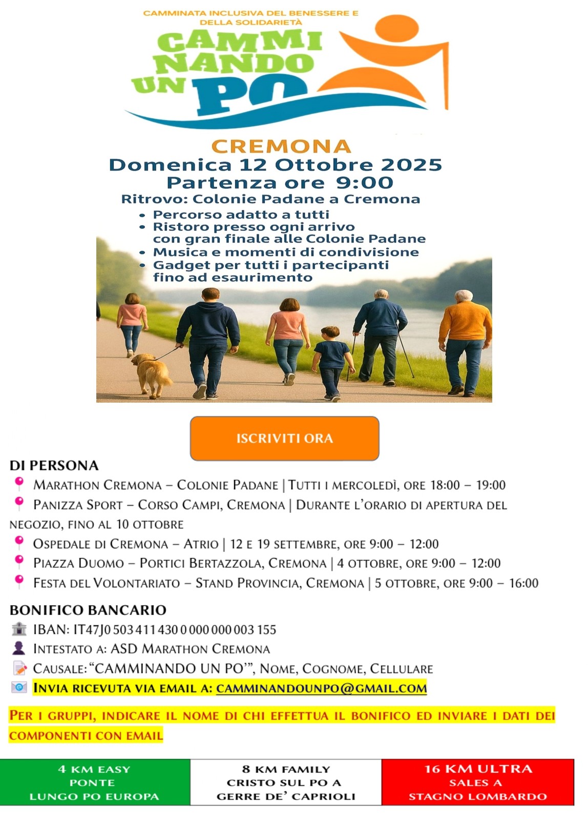 La Provincia di Cremona organizza la terza edizione di CAMMINANDO UN PO, la manifestazione inclusiva ludico motoria che coniuga il benessere, la solidarietà e la socializzazione, tutti temi rilevanti per garantire una società sana e generosa.