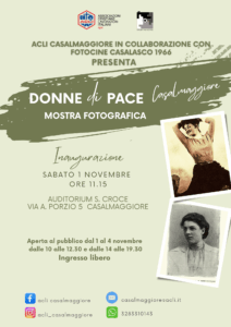 ACLI Casalmaggiore, in collaborazione con Fotocine Casalasco 1966, presenta la mostra fotografica “Donne di Pace Casalmaggiore”, un percorso visivo e narrativo dedicato alle donne che, con il loro impegno, la loro forza e la loro umanità, hanno contribuito a costruire la pace nella vita quotidiana e nella storia della comunità casalasca.