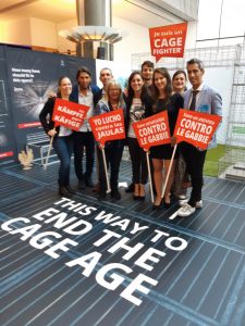 Bruxelles, 25 settembre 2018 – FRECCIA 45 ha partecipato oggi al lancio ufficiale di “END OF THE CAGE AGE“, iniziativa dei cittadini europei contro la detenzione in gabbie degli animali negli allevamenti.