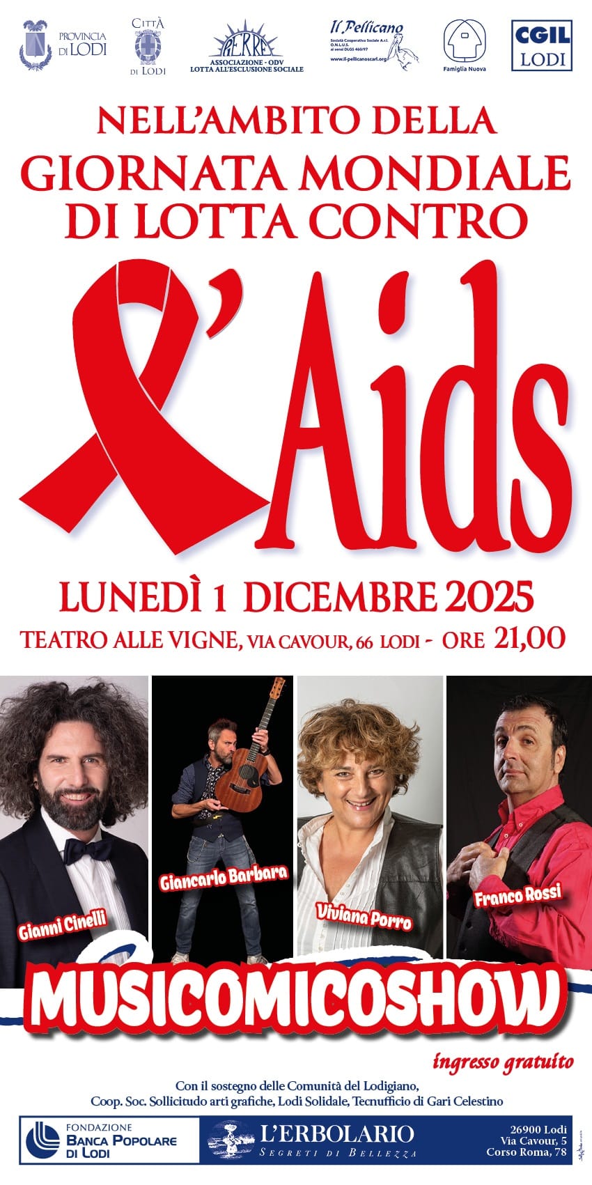 L’associazione Pierre, Lotta all’esclusione sociale organizza per lunedì 1° Dicembre 2025 alle ore 21.00 al Teatro alle Vigne di Lodi, in Via Cavour, 66, invita la cittadinanza a “Musicomicoshow” con ingresso gratuito.