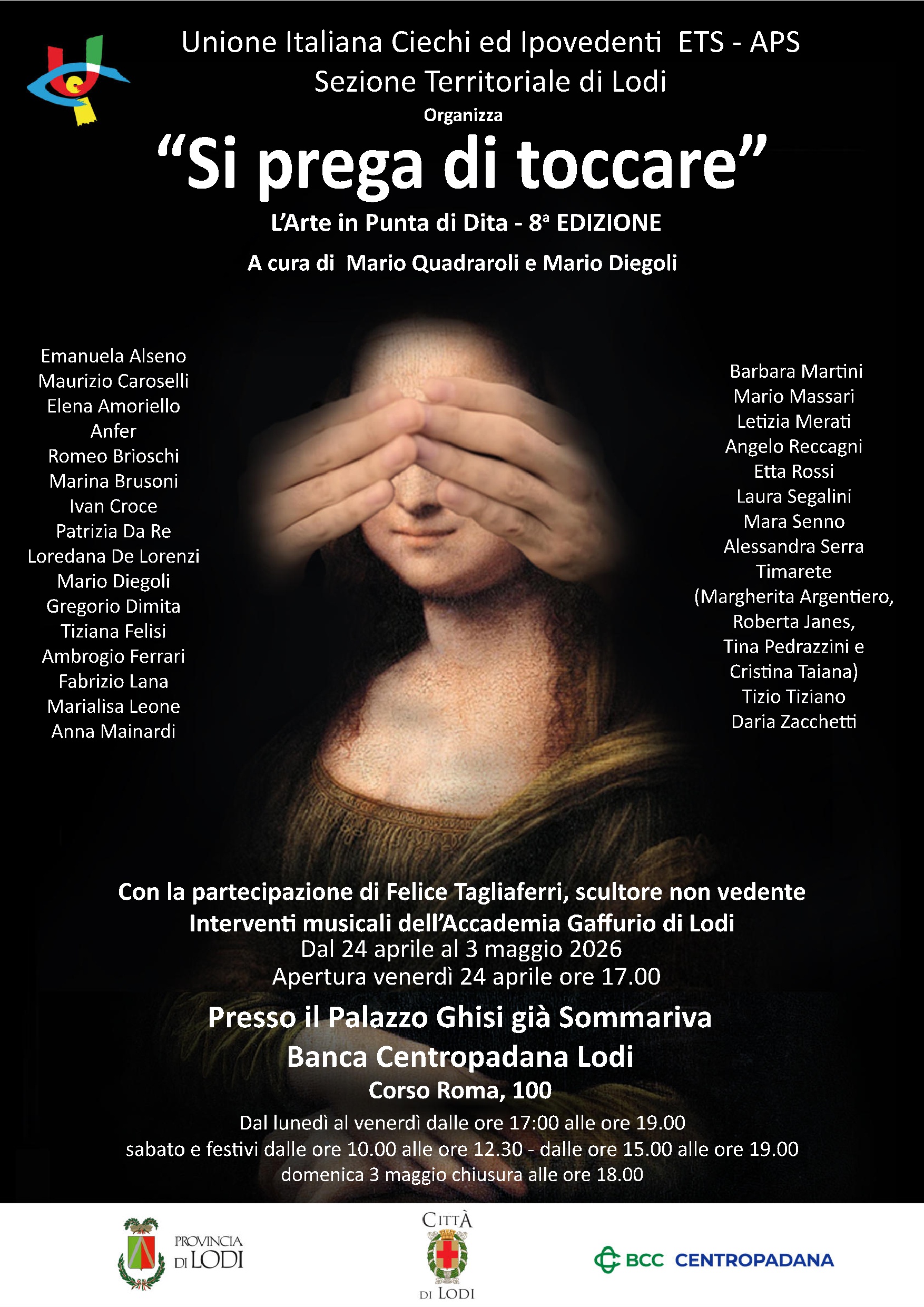 Come tradizione alla fine di aprile la sezione lodigiana dell’Unione Italiana Ciechi e Ipovedenti organizza la mostra “Si prega di toccare”, un evento giunto quest’anno all’ottava edizione e che richiama sempre centinaia di visitatori, anche dalla provincia.