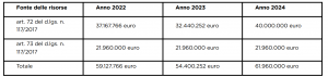 Per favorire la programmazione triennale, l’atto di indirizzo contiene anche le risorse disponibili fino al 2024: