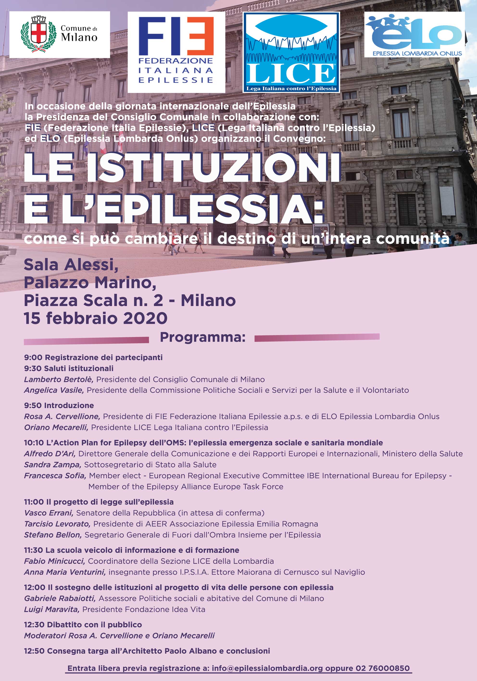 Il 15 febbraio, in occasione della Giornata Internazionale dell’Epilessia, nella Sala Alessi di Palazzo Marino, Milano si terrà il Convegno “Le Istituzioni e l’epilessia: come si può cambiare il destino di un’intera comunità”.