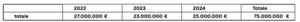 Nel precedente triennio (cfr. dm 141/2022) la dotazione totale ammontava a 75.000.000 euro, così ripartita: