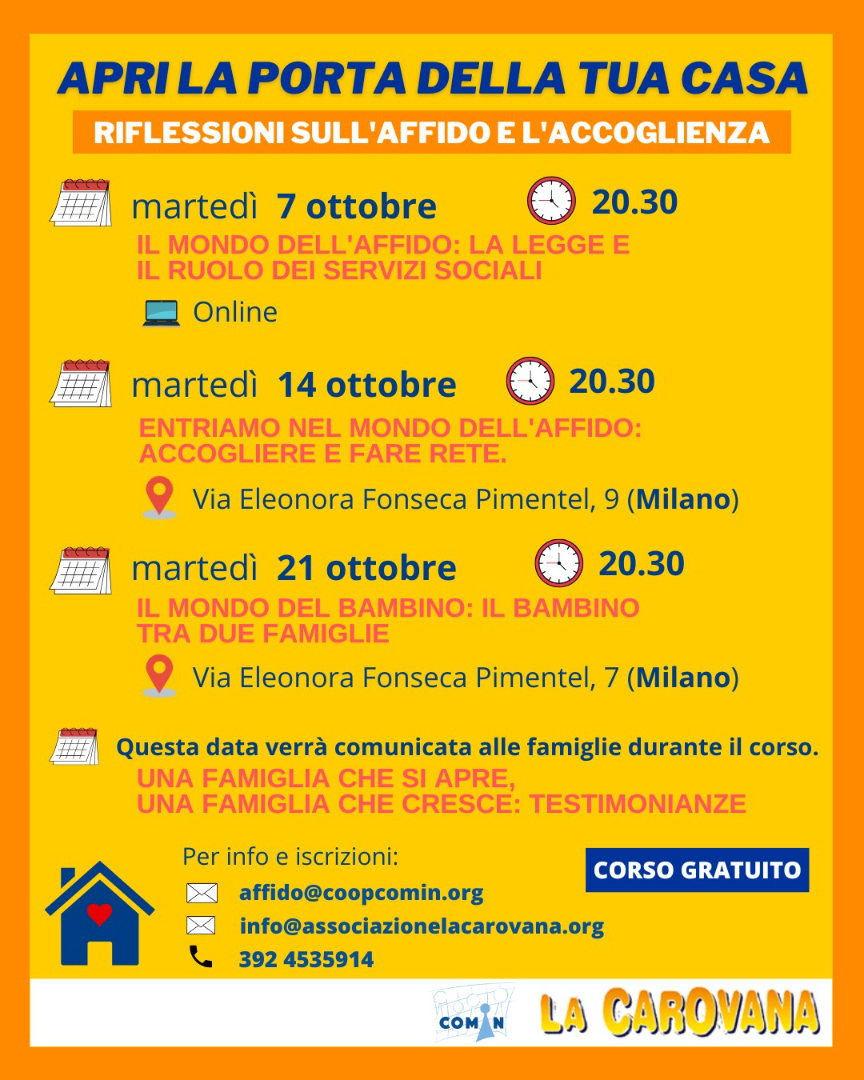L'Associazione La Carovana, famiglie accoglienti in movimento, in collaborazione con la cooperativa Comin propone 4 serate di approfondimento sul tema:
