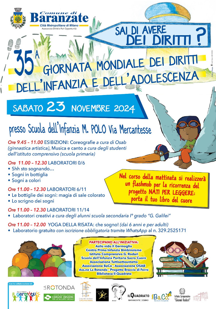 Sabato 23 novembre, a partire dalle ore 9.45, presso la Scuola dell'Infanzia M. Polo, si terrà l’evento conclusivo delle iniziative organizzate per celebrare questa importante ricorrenza con laboratori creativi, musica per una riflessione condivisa sul valore del sogno. Un momento che rappresenta il frutto della collaborazione tra operatori dei servizi, insegnanti di ogni ordine di scuola, oratori, associazioni e altre realtà locali, che hanno lavorato insieme per progettare e realizzare attività destinate a sensibilizzare la comunità sui diritti dei bambini e delle bambine.