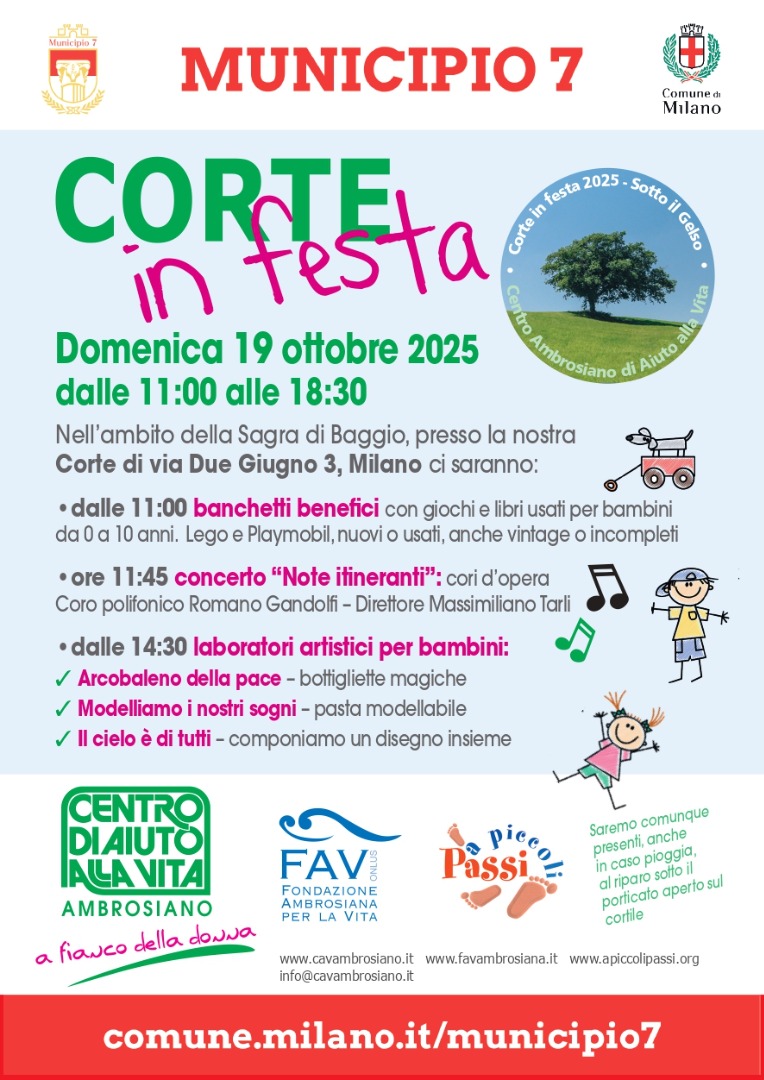 nell’ambito della 397° Sagra di Baggio presso la Corte di via Due Giugno 3 a Milano, dalle ore 11.00 alle 18.30, il Centro Ambrosiano di Aiuto alla Vita organizza: