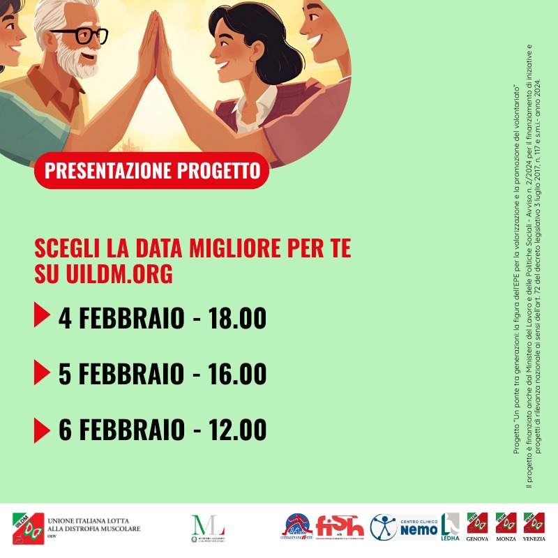 Si accede all'evento cliccando su questo link: https://uildm.org/blog/presentazione-progetto-un-ponte-tra-generazioni/