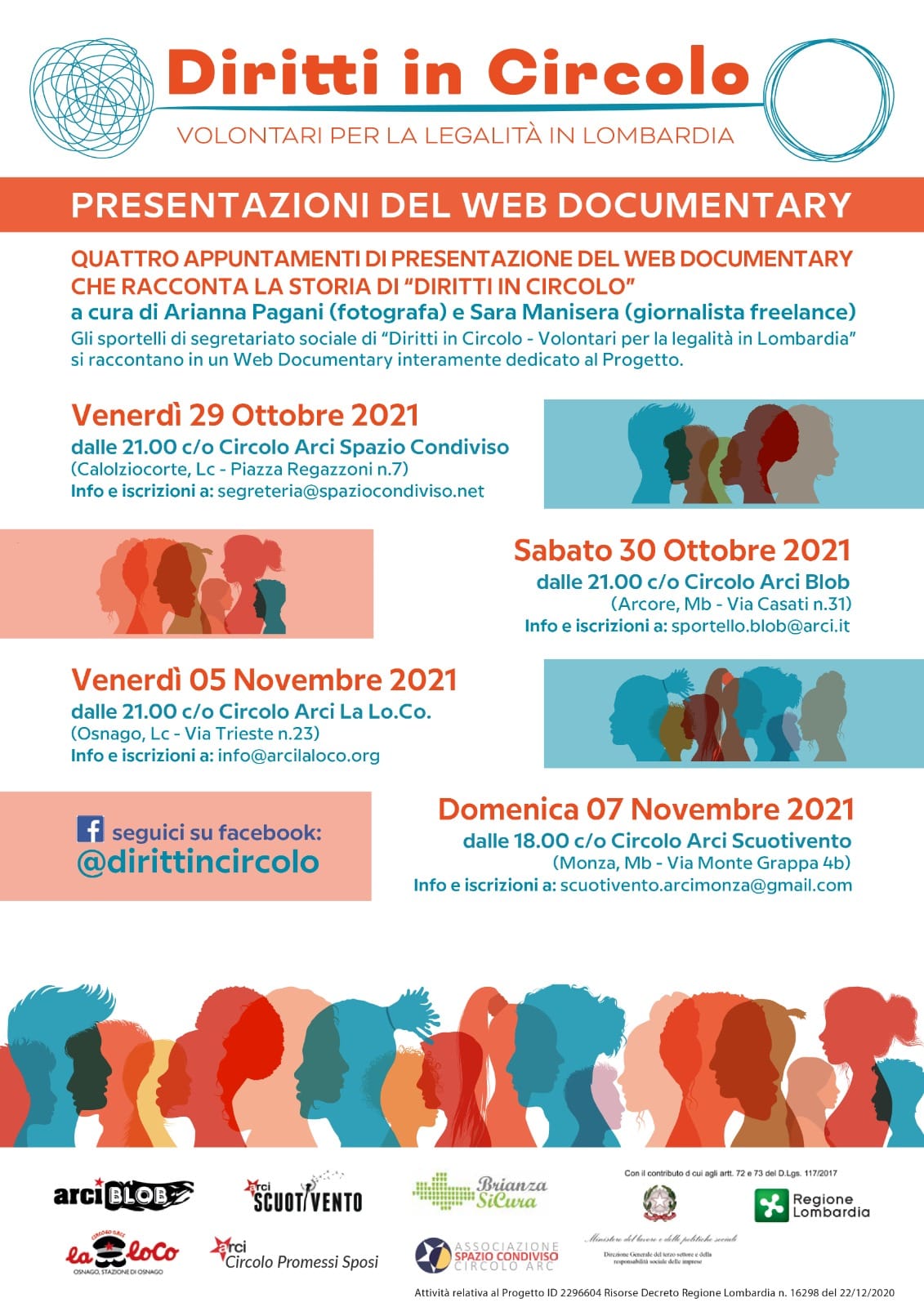 Il web doc a cura di Arianna Pagani e Sara Manisera Sarà presentato il 29 Ottobre nell’ambito del progetto Diritti in Circolo che ha visto alcuni circoli Arci della Brianza e del lecchese sempre attivi anche durante la pandemia