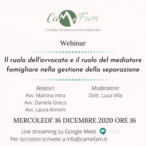È un’Associazione senza scopo di lucro, nata il 14.10.2013 dall’idea di cinque professionisti (avvocato, medico, psicologo, pedagogista, assistente sociale) che in Brianza si occupano di mediazione familiare.