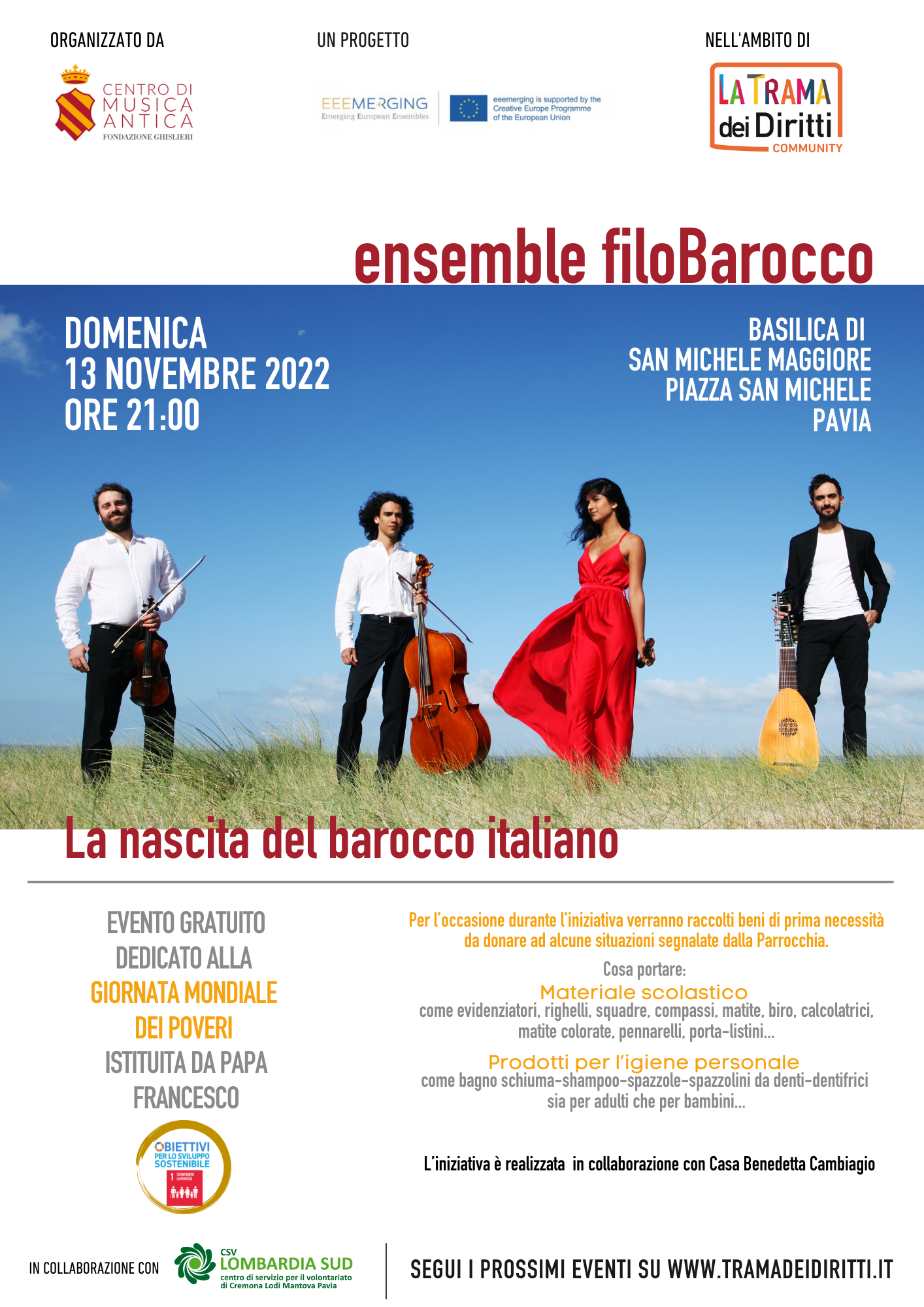 L’ensemble filoBarocco per la Giornata mondiale dei poveri