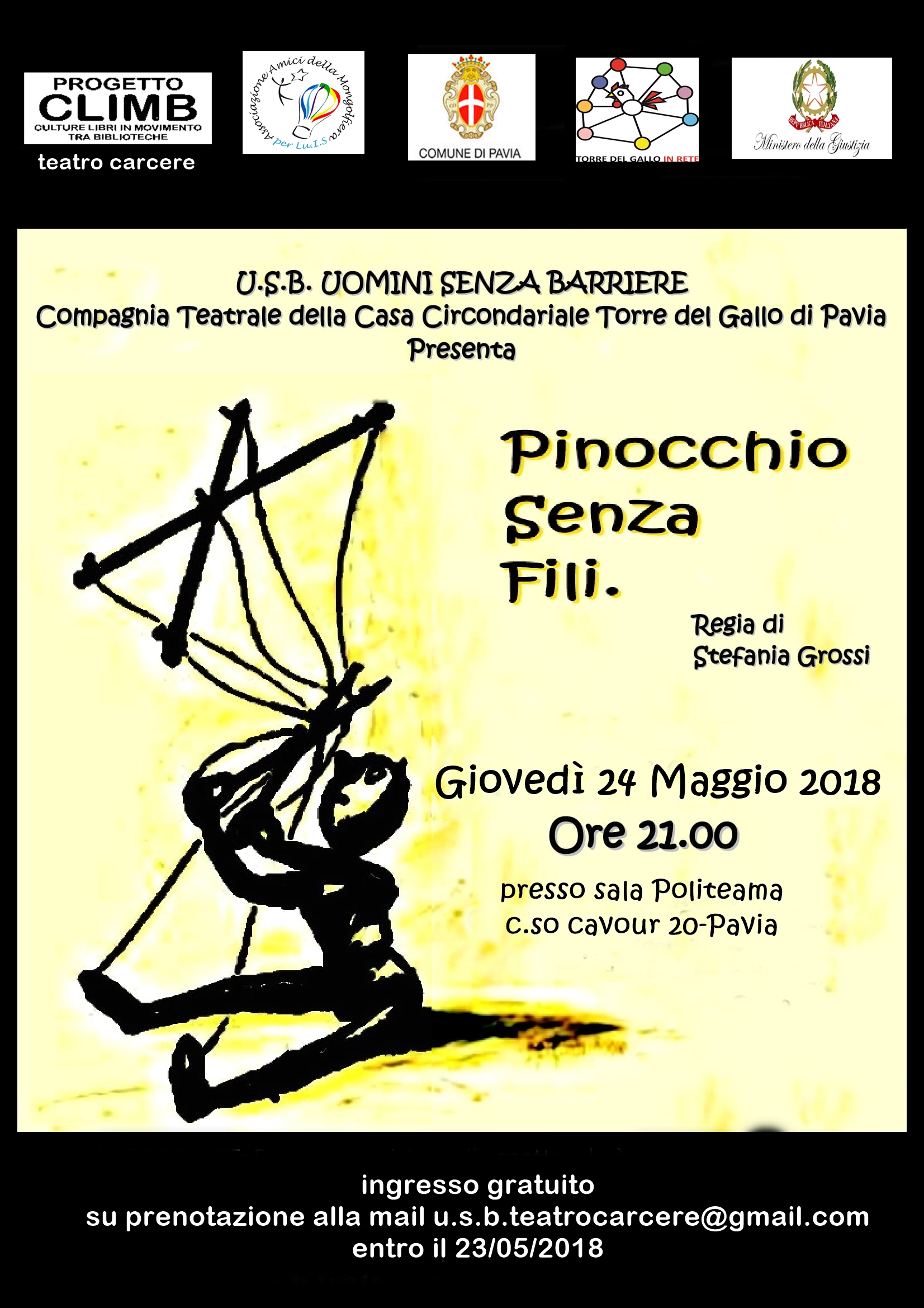 Andrà in scena il prossimo 24 maggio alle 21 presso il teatro Politeama di Pavia “Pinocchio senza Fili” uno spettacolo realizzato da USB Uomini Senza Barriere, compagnia di teatro carcere integrato. La rappresentazione racconta una storia che si dipana intorno alle difficoltà dei ragazzi nel loro percorso di crescita sia nei rapporti familiari che nella relazione con il mondo degli adulti.