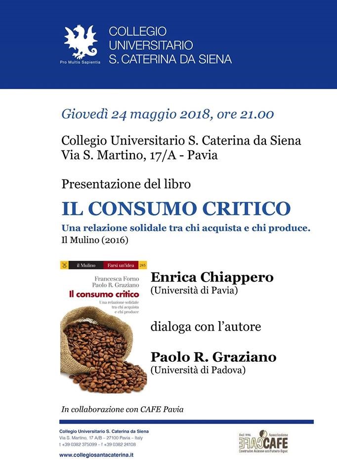 Giovedì 24 maggio ore 21.00 al Collegio Santa Caterina, presentazione del libro: “Il consumo critico. Una relazione solidale tra chi acquista e chi produce” Una relazione solidale tra chi acquista e chi produce”.