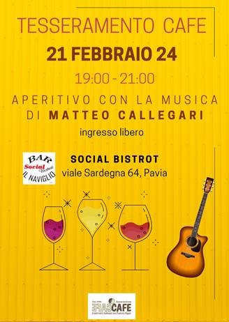 Mercoledì 21 febbraio dalle ore 19.00 alle 21.00 si svolgerà l’aperitivo in musica con l‘Associazione Cafe, presso il Social Bistrot, viale Sardegna 64, Pavia.