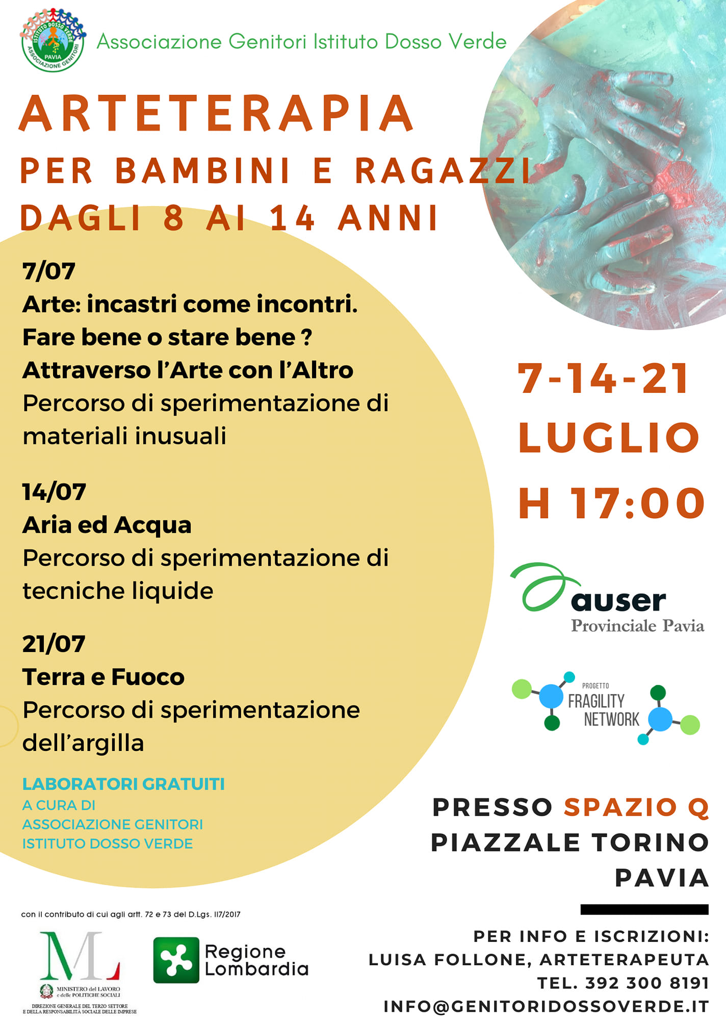 Nell’ambito del progetto Fragily Network gestito da Auser Comprensoriale di Pavia, al via una serie di laboratori gratuiti di Arteterapia per bambini e ragazzi dagli 8 ai 14 anni promossi da Associazione genitori Dosso Verde.