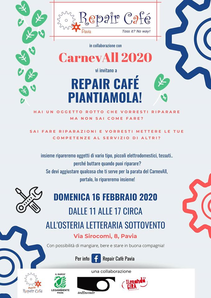 Domenica 16 febbraio dalle 11 alle 17 all’Osteria Letteraria Sottovento in via Siro Comi, Repair Cafè, darà una mano al laboratorio per il carnevALL.