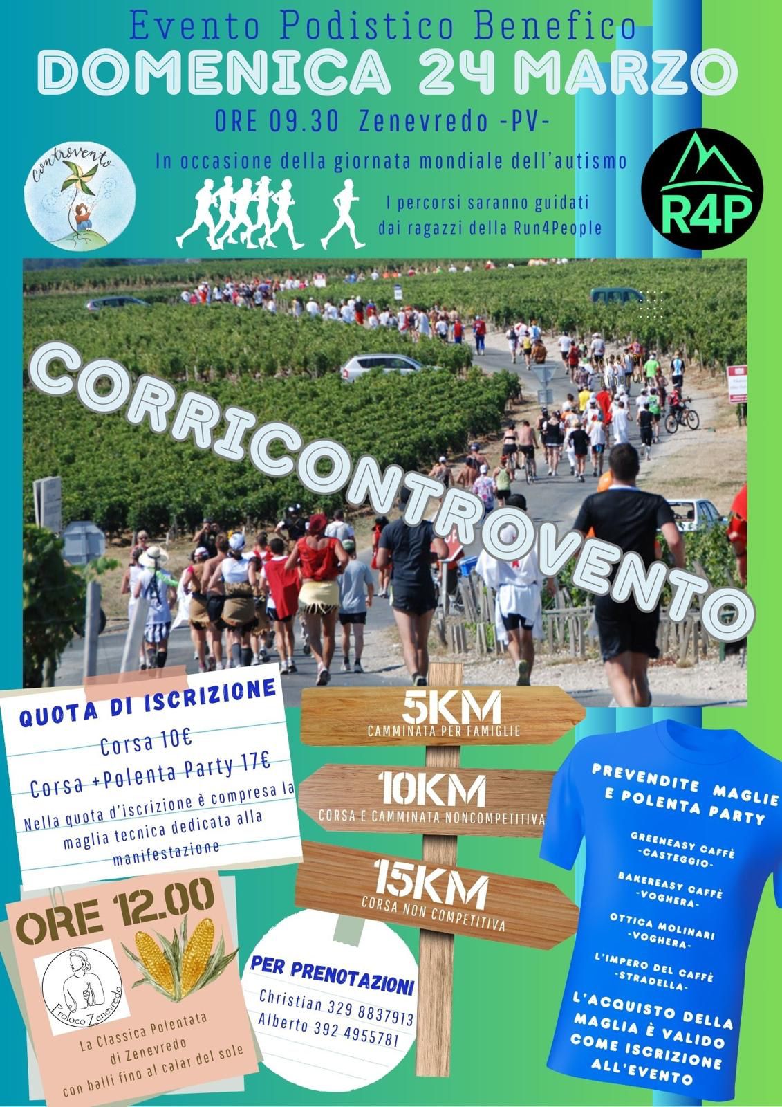 Domenica 24 marzo alle ore 09.30 in occasione della giornata mondiale dell’autismo, si svolgerà l’evento podistico benefico “Corricontrovento”, presso Zenevredo, Pavia.