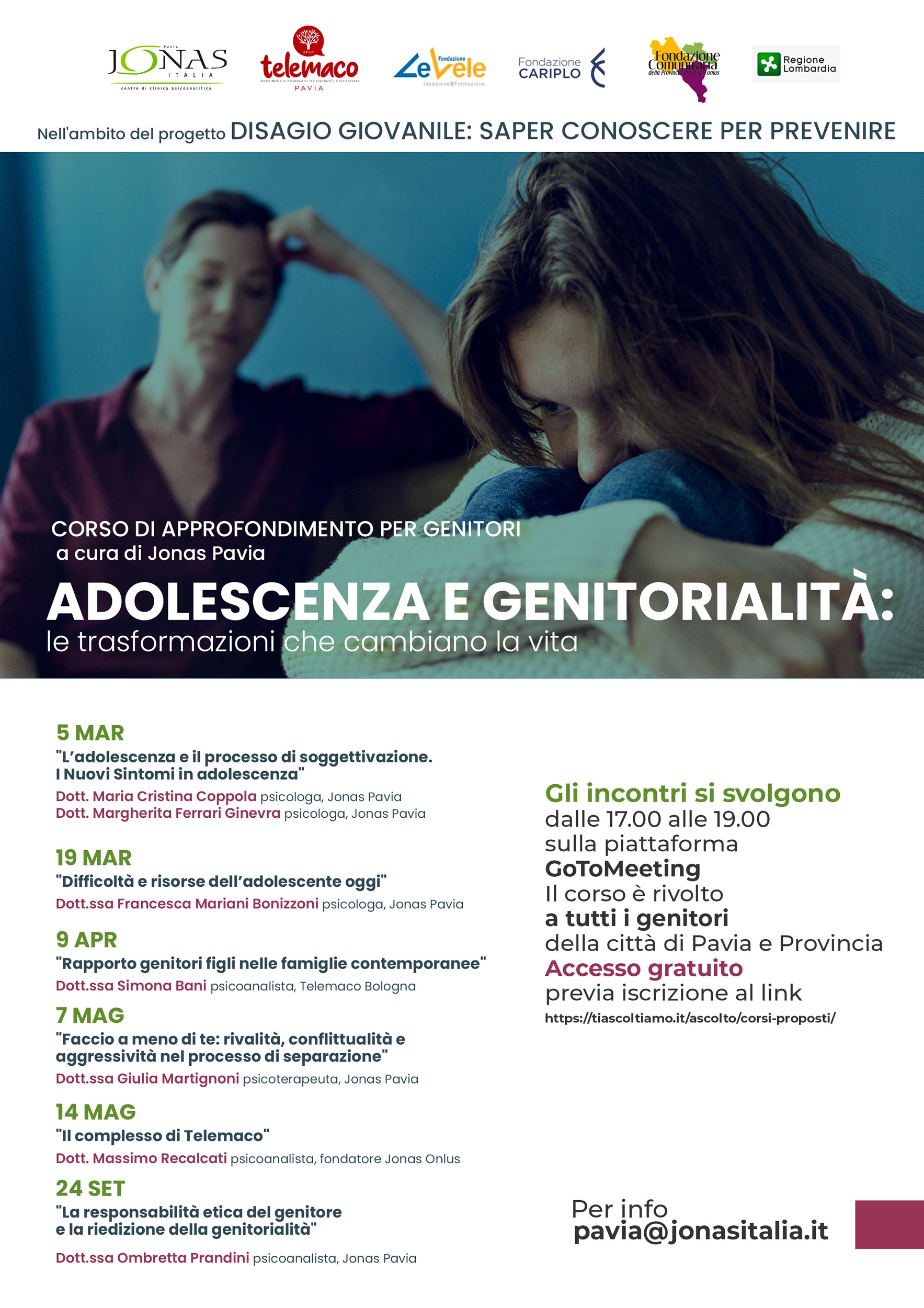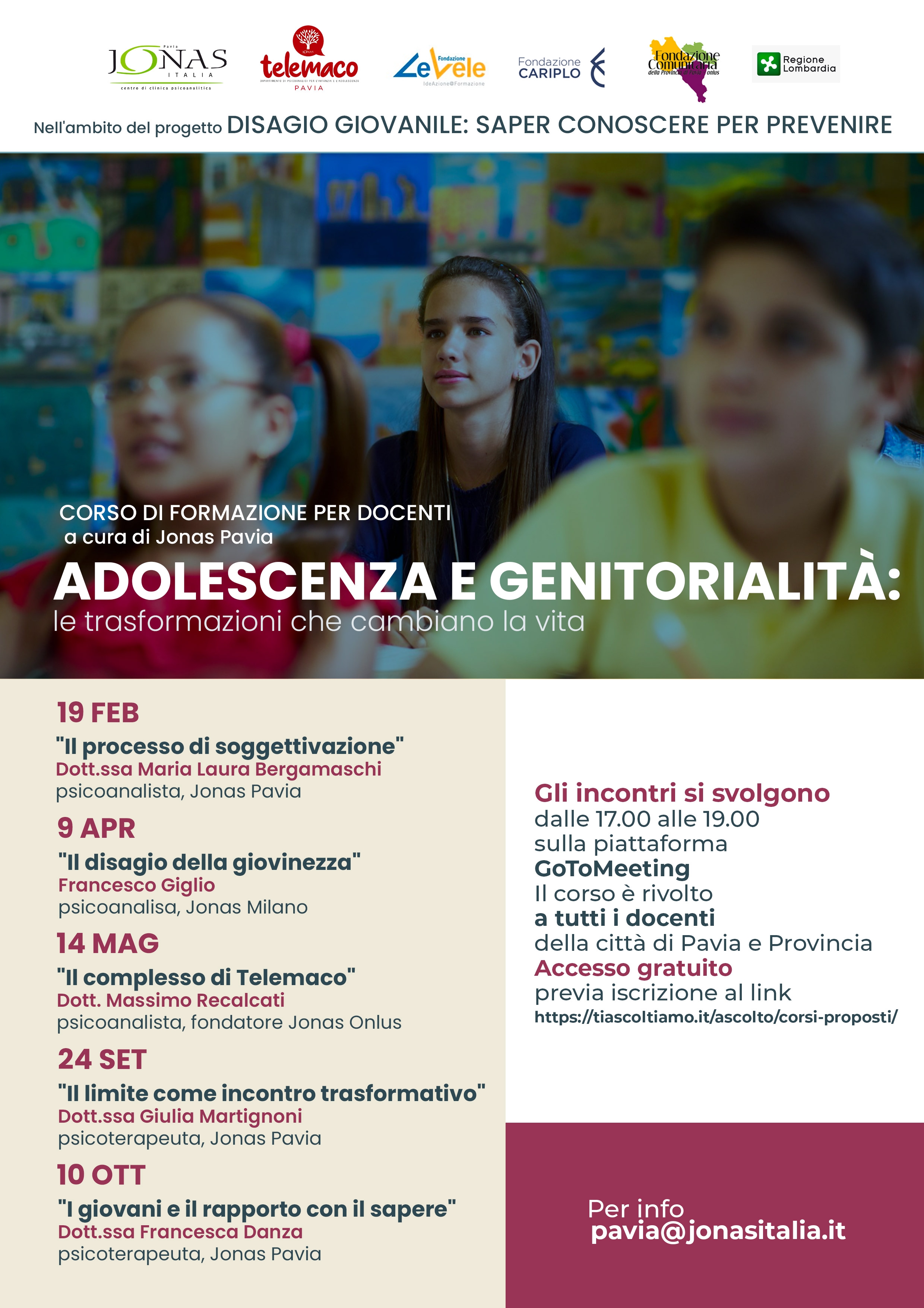Jonas Onlus in collaborazione con Telemaco Pavia e la Fondazione le Vele e nell’ambito del progetto “Ti ascoltiamo” organizza corsi per genitori e per insegnanti.