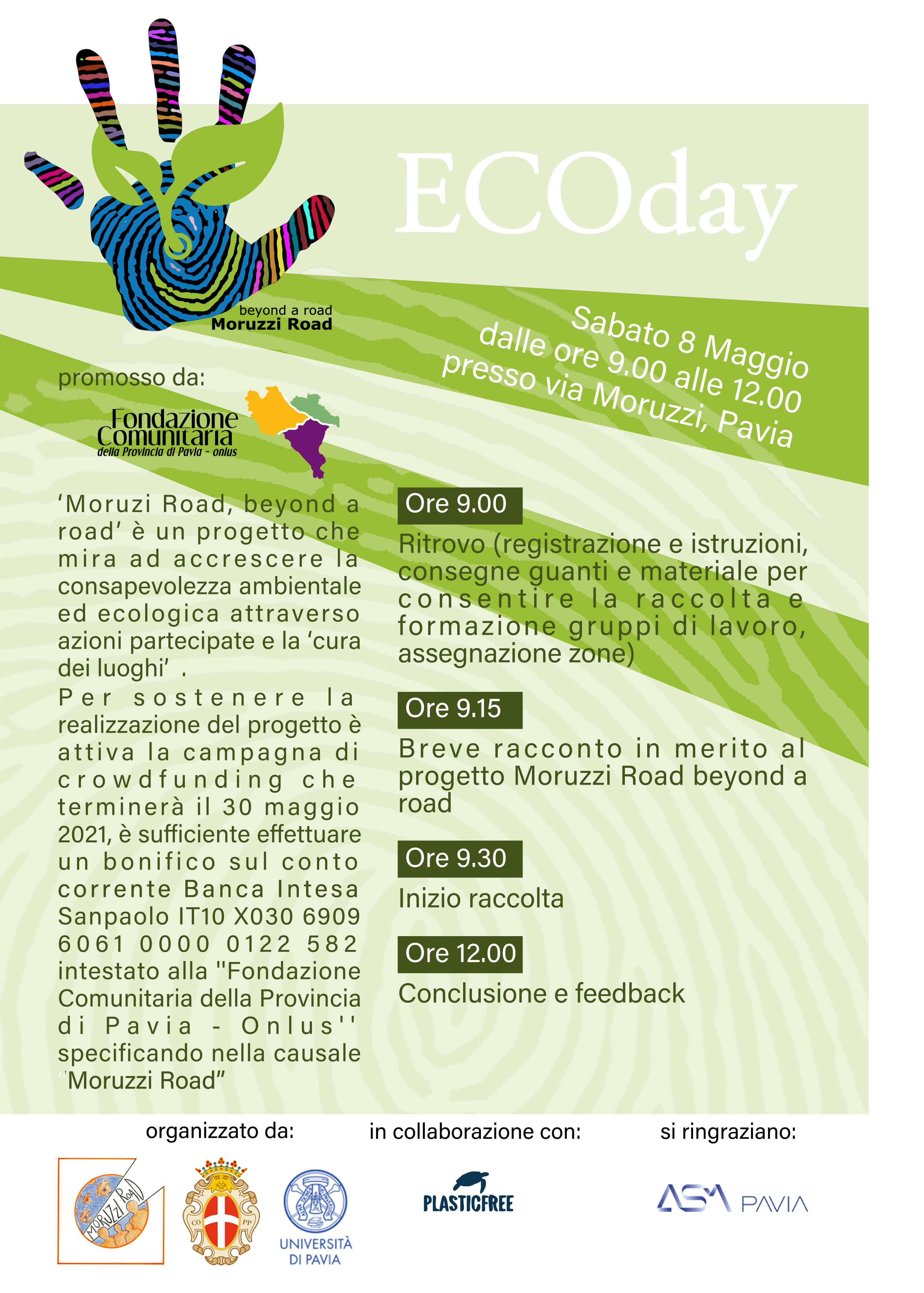 Il progetto “Moruzzi Road, beyond a road” presentato dal Dipartimento di Ingegneria Civile e Architettura dell’Università degli Studi di Pavia (capofila) insieme al Comune di Pavia e all’Associazione Moruzzi Road è stato ammesso al finanziamento del 6° bando 2020 ‘Ambiente e Territorio e Innovazione Digitale’ di Fondazione Comunitaria, con il contributo di Cariplo e Pavia Acque.