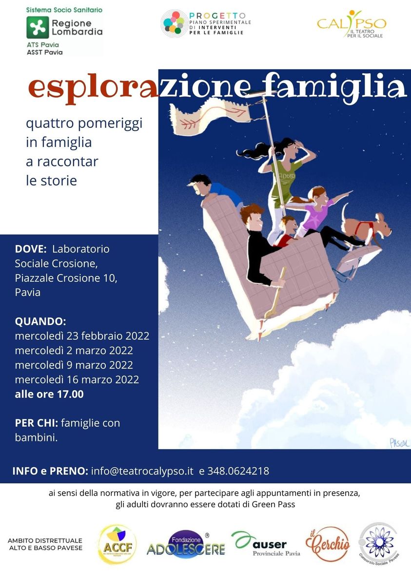 In partenza un nuovo giro di storie, grazie all’iniziativa ESPLORAZIONE FAMIGLIA, proposta da Calypso – il teatro per il sociale (pagina facebook) all’interno del progetto Piano Sperimentale di Interventi per le Famiglie, di Agenzia di Tutela della Salute – ATS di Pavia e Asst Pavia, con il contributo di Regione Lombardia.