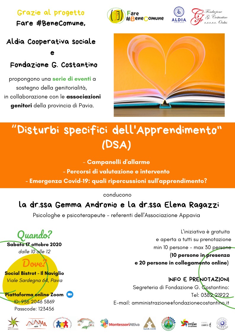 Sabato 17 ottobre 2020, dalle 10 alle 12 avrà luogo il secondo incontro formativo rivolto ai genitori organizzato da Aldia Cooperativa Sociale e Fondazione G. Costantino.