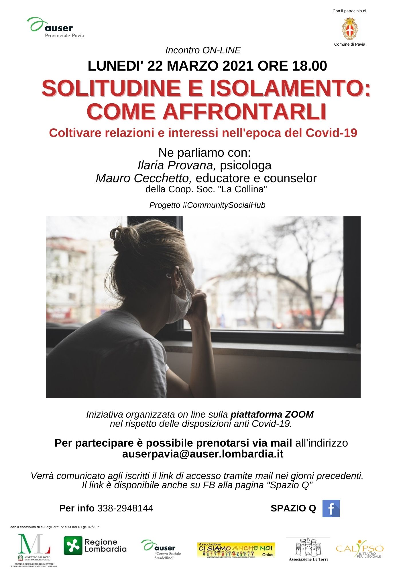 Lunedi 22 marzo alle ore 18, Auser provinciale di Pavia organizza un incontro on-line su piattaforma Zoom per ragionare su come gestire l’isolamento e la solitudine e su come “usare” al meglio questo tempo per coltivare relazioni e interessi.