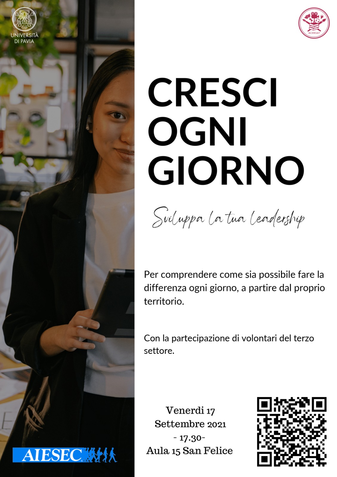 Venerdì 17 settmebre alle 17:30 in Aula Foscolo Università di Pavia in corso Strada Nuova 65, AIESEC organizza un incontro aperto ai nuovi aspiranti volontari e soci.