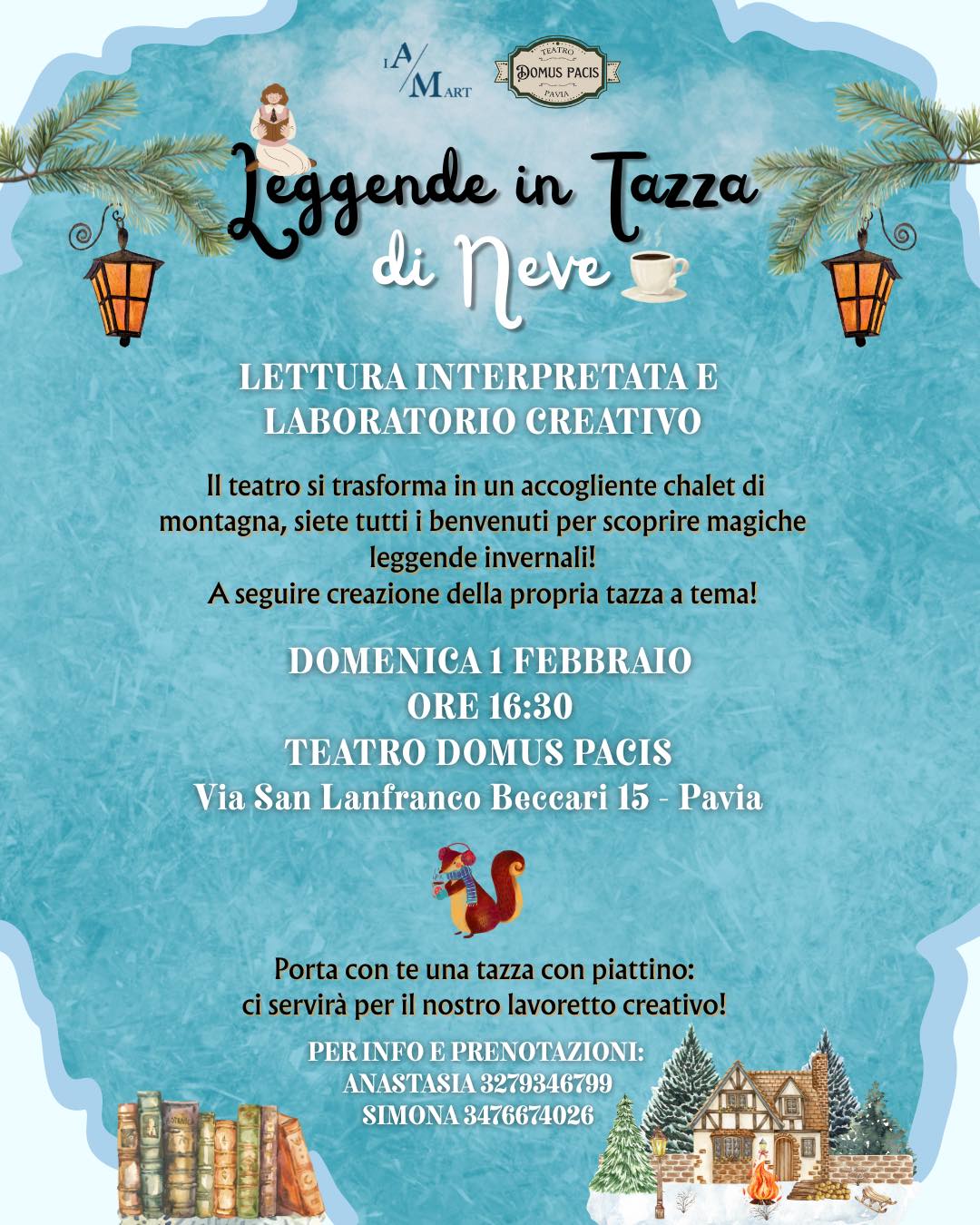 Per un pomeriggio d’inverno, il teatro si trasforma in un accogliente chalet di montagna, dove il calore delle storie incontra la magia della creatività, per scoprire affascinanti leggende invernali, raccontate attraverso una lettura interpretata, seguita da un laboratorio creativo: ogni partecipante potrà dare forma alla propria tazza a tema, da portare a casa come ricordo dell’esperienza.