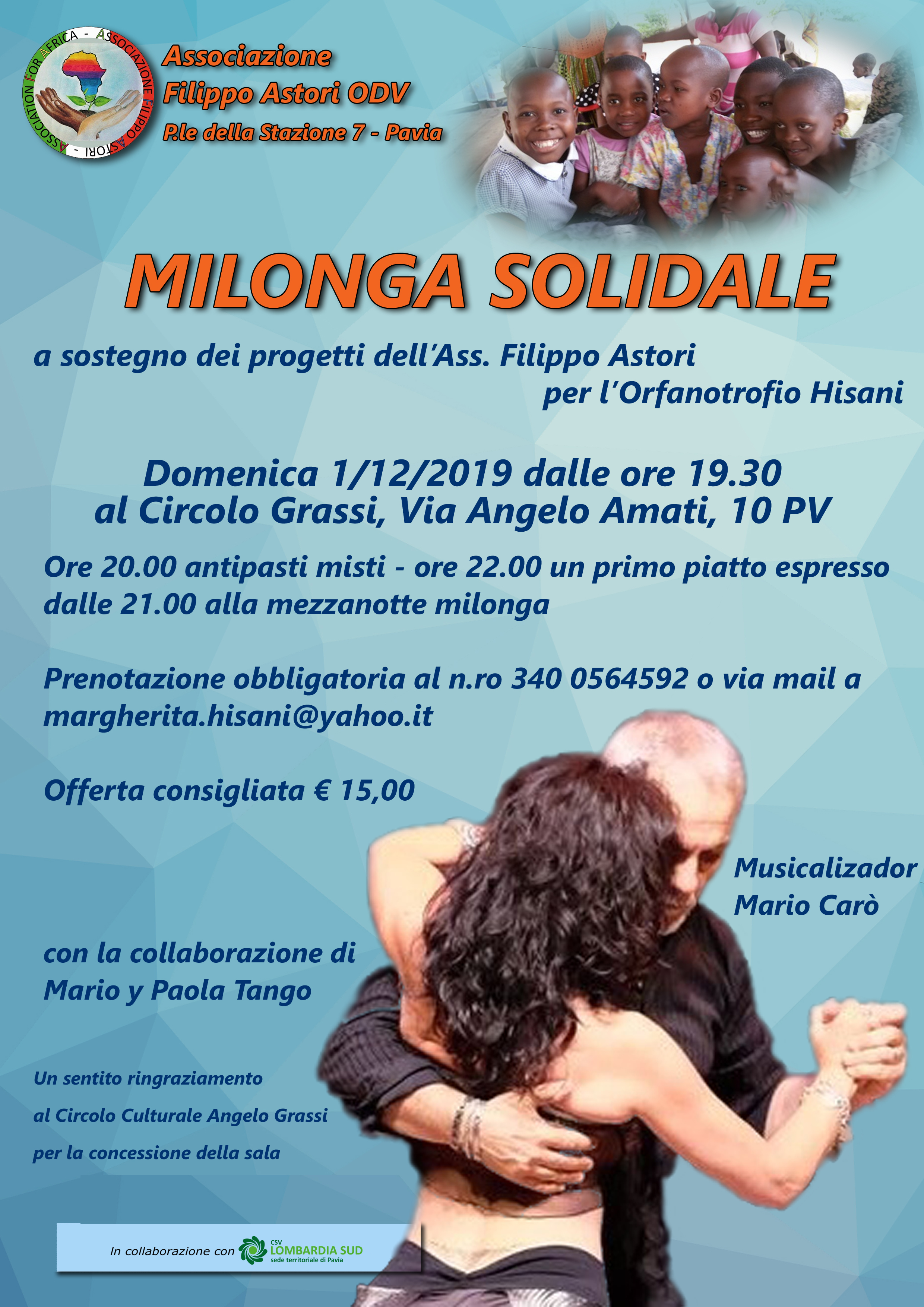 A sostegno dei progetti dell’Associazione Filippo Astori per l’Orfanotrofio Hisani in Tanzania, una serata conviviale allietata dalla milonga al Circolo Grassi in via Amati a Pavia.