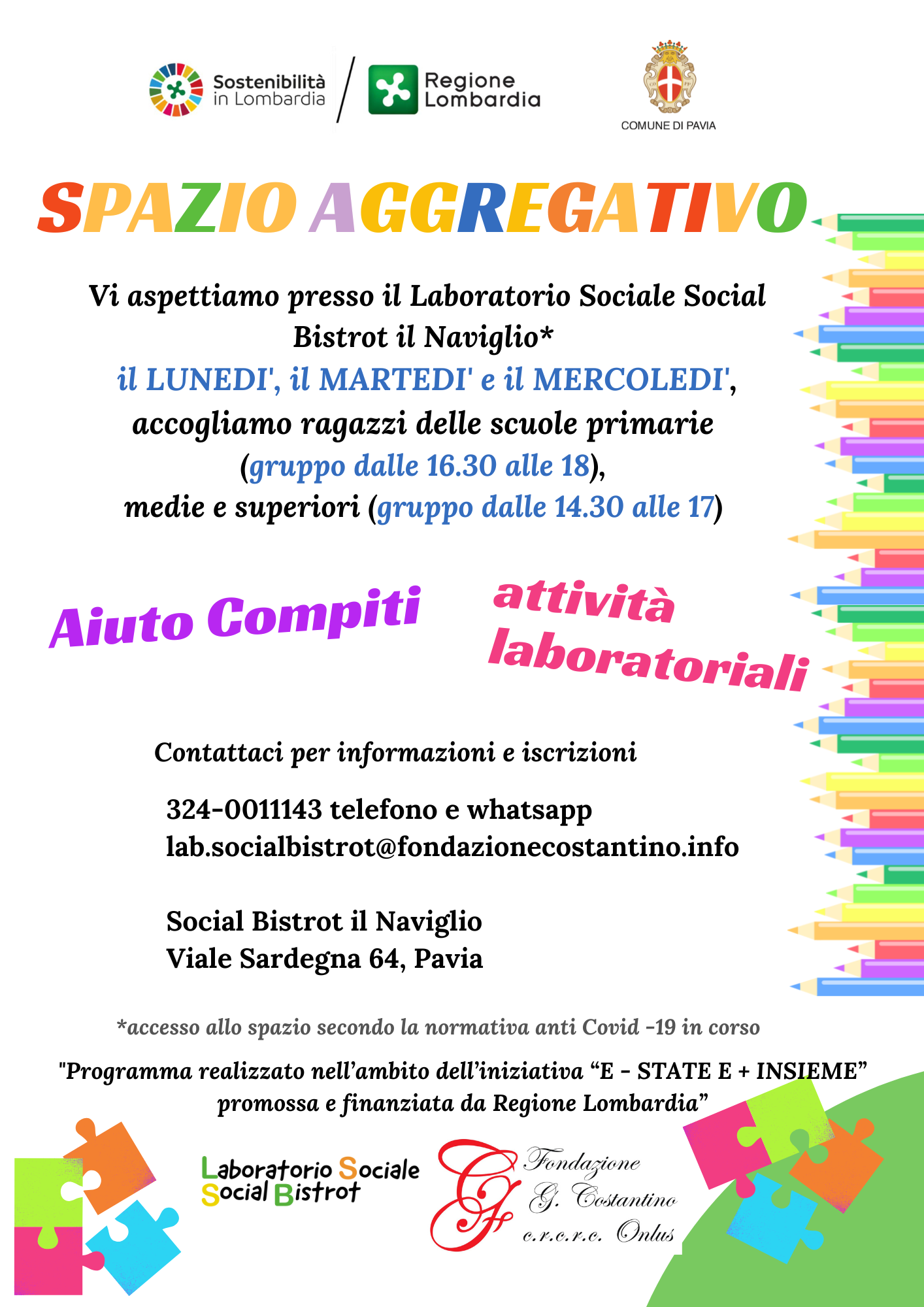 Per informazioni, iscrizioni e prenotazioni per tutte le attività: 324 0011143 e lab.socialbistrot@fondazionecostantino.info