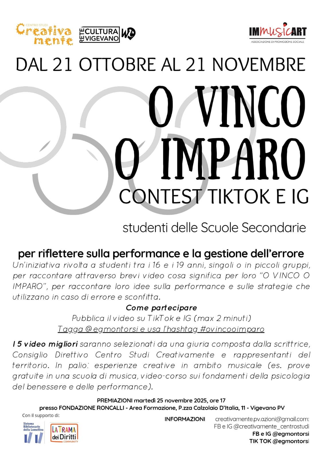 Il concorso è organizzato nell’ambito del progetto “O VINCO O IMPARO – Sport, educazione e crescita personale”, promosso dal Centro Studi Creativamente.