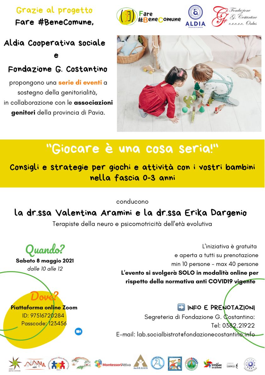 Sabato 8 maggio dalle 10:00 alle 12:00, nuovi consigli e strategie per strutturare giochi e attività che i genitori possono fare con i piccoli di famiglia nella fascia 0-3 anni.