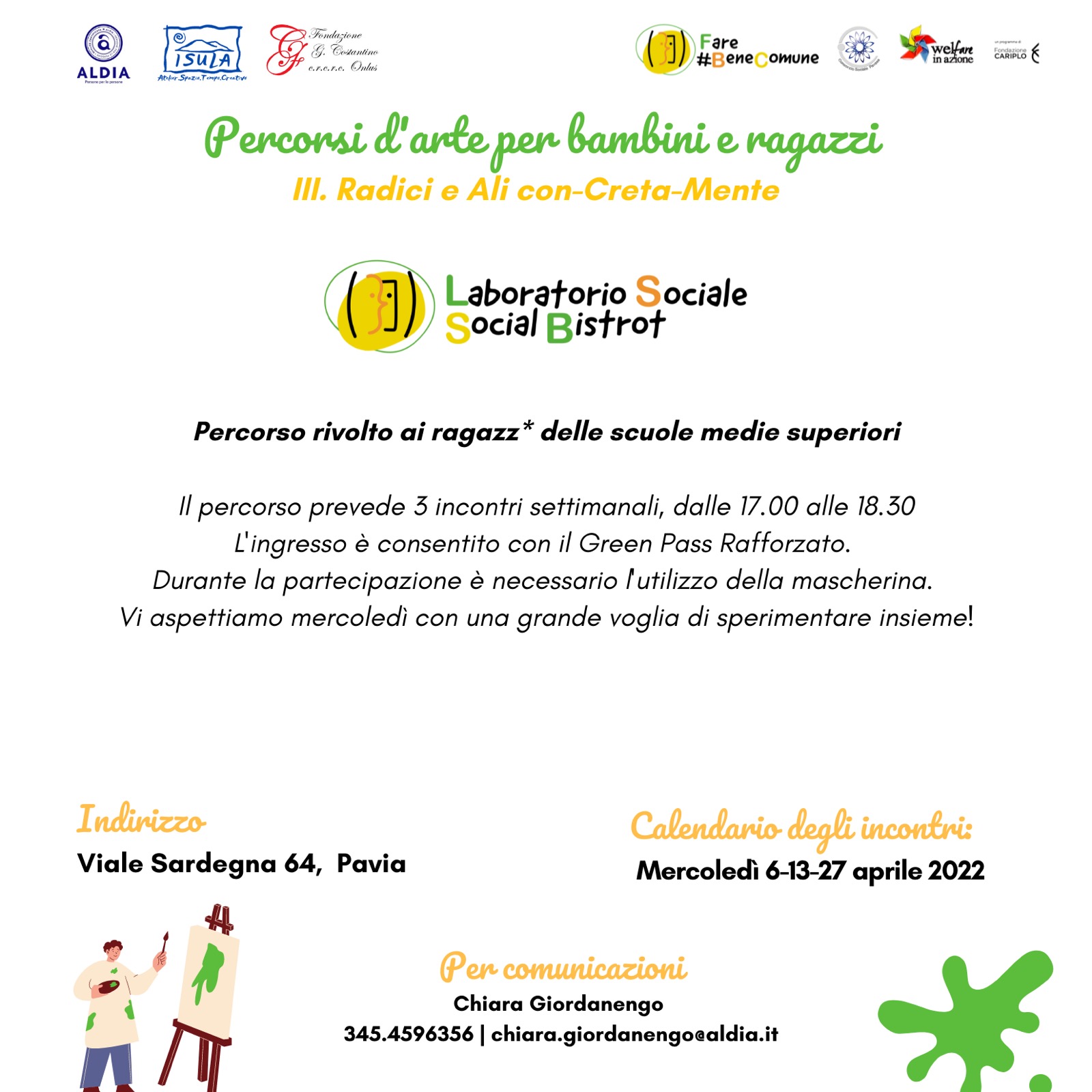Laboratorio realizzato con la collaborazione di Aldia Cooperativa Sociale, Atelier Spazio Tempo Creativo, Fondazione G. Costantino, Welfare in azione, Consorzio Sociale Pavese, e Fondazione Cariplo.