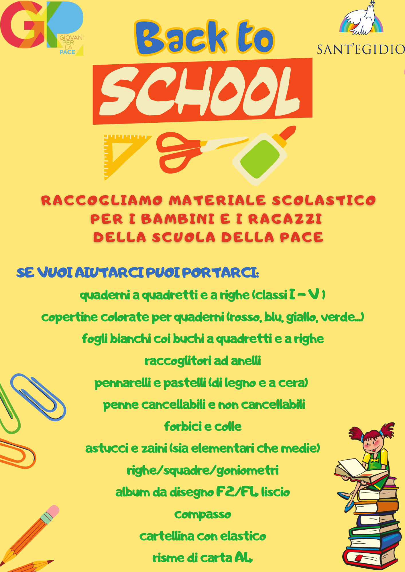 La Comunità di Sant’Egidio di Pavia promuove una raccolta di materiale scolastico per i bambini e ragazzi delle famiglie che frequentano al Scuola della Pace.