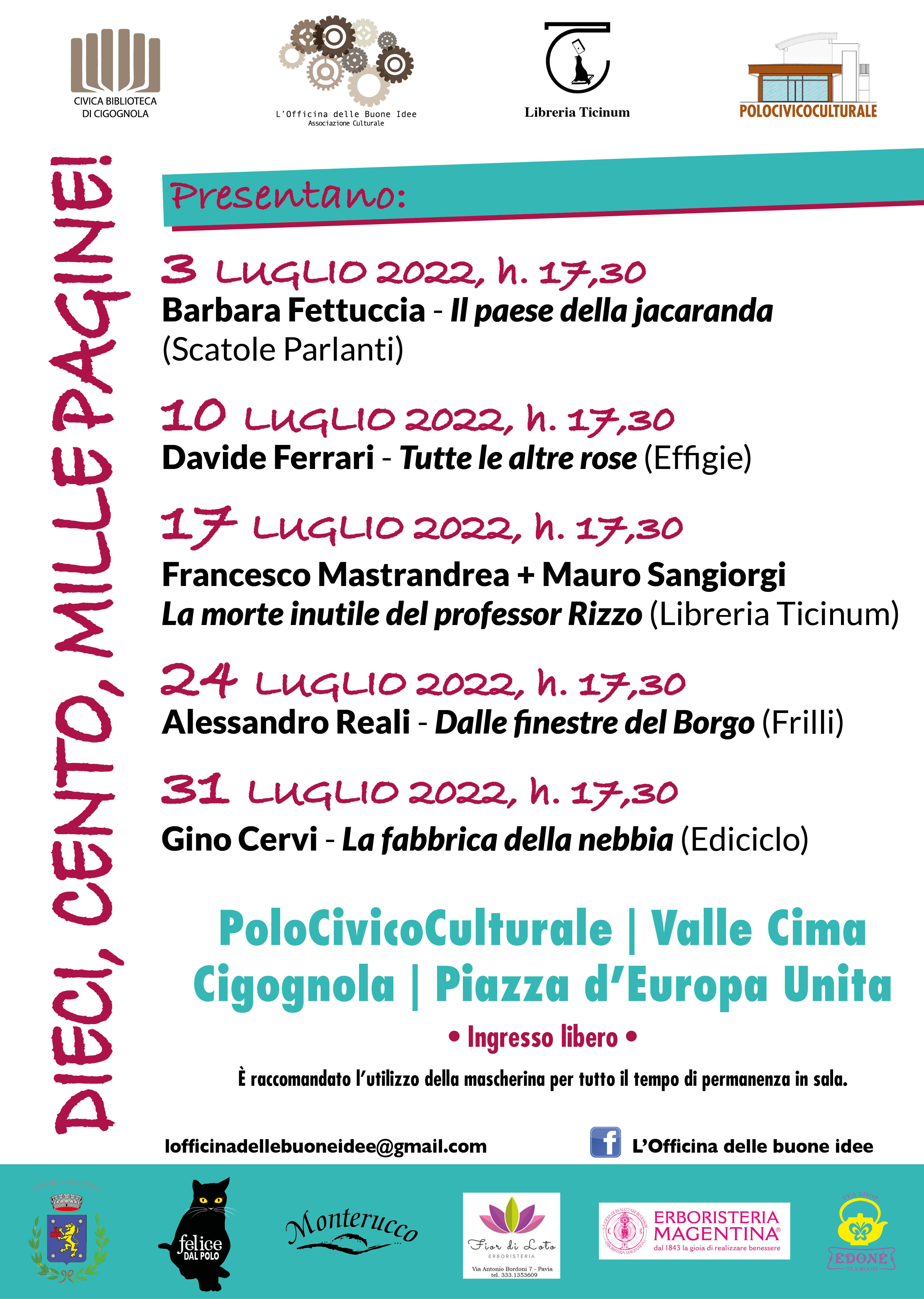 Davide Ferrari sarà il prossimo ospite della rassegna Dieci, cento, mille pagine organizzata dall’associazione culturale L’Officina delle Buone Idee di Cigognola.