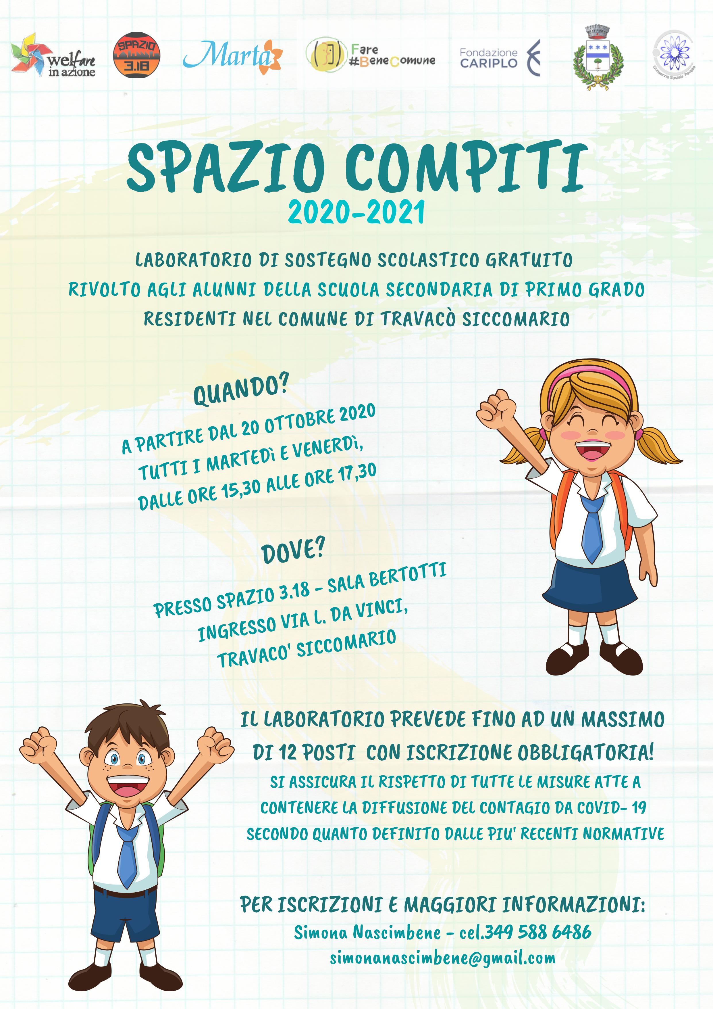 Dal 20 ottobre prosegue il laboratorio di sostegno scolastico presso lo Spazio 3.18 nella Sala Bertotti a Travacò Siccomario, ogni martedì e venerdì, dalle 15,30 alle 17,30.